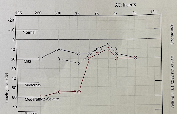 For example, at 500Hz I had -55dB hearing loss but my good ear was -10, so the difference was 45dB. Half of 45 is 22. That means I should be boosting 500Hz in Spotify by 22dB.